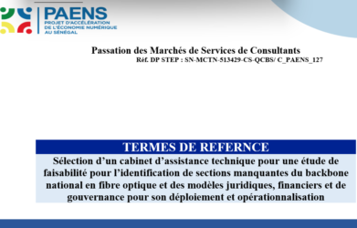 Le Projet d’Accélération de l’Economie Numérique au Sénégal (PAENS) a pour objectif de développement : « étendre